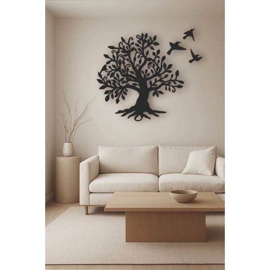 Lazer Kesim Metal Duvar Dekoru, ağaç figürü 40 cm