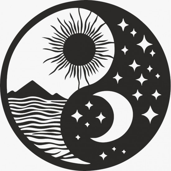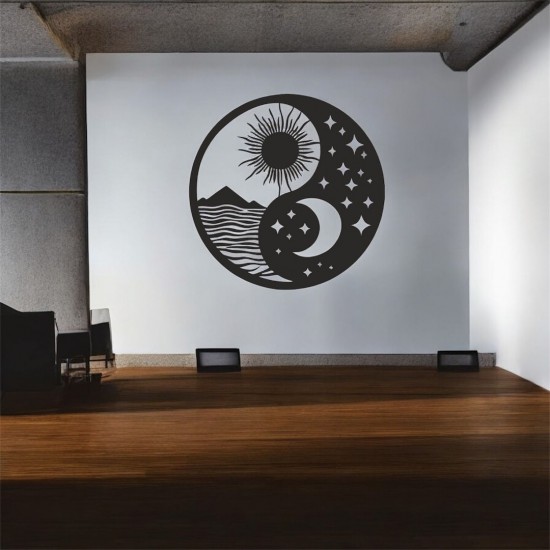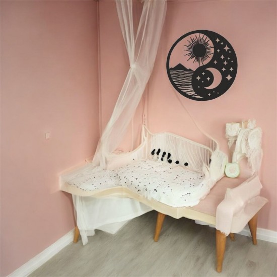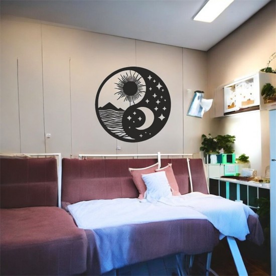 Lazer Kesim Metal Duvar Dekoru, Güneş Ay Yıldız 40 cm