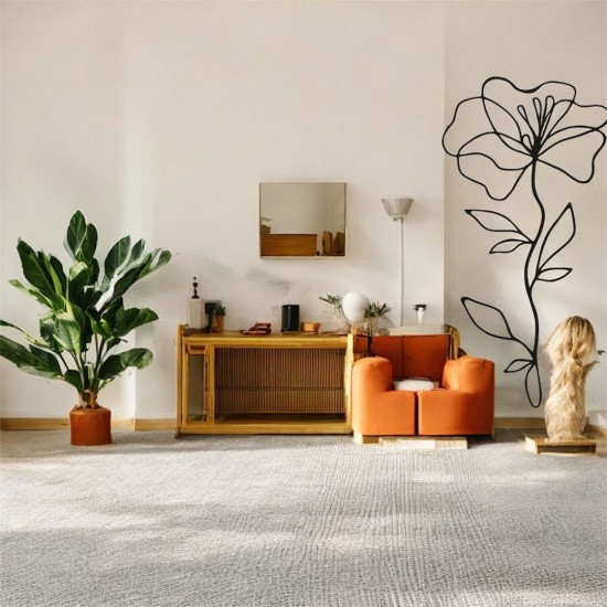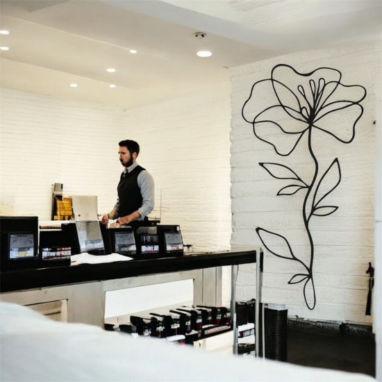 Lazer Kesim Metal Duvar Dekoru, ince bellii çiçek figürü 40 cm