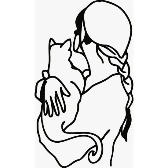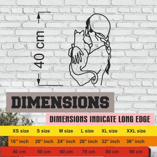 Lazer Kesim Metal Duvar Dekoru, Kız ve Kedi 40 cm