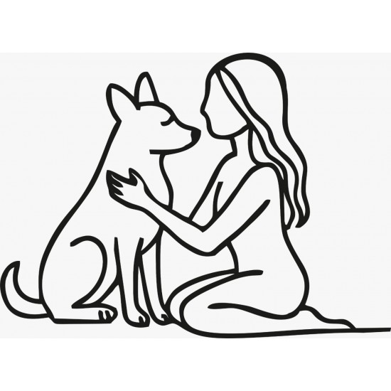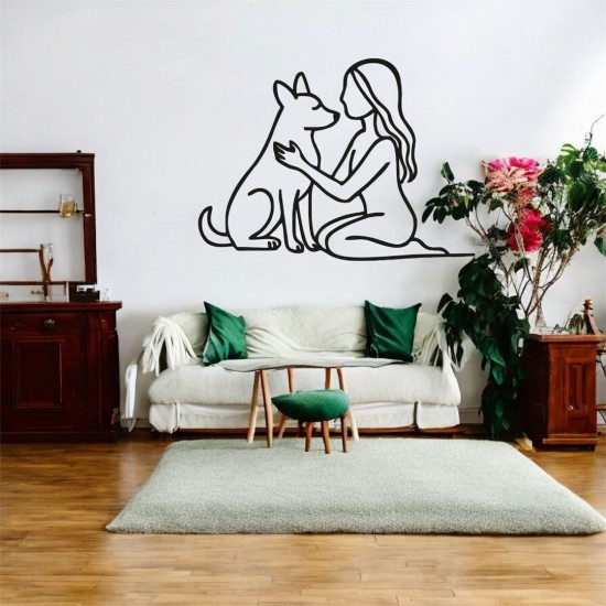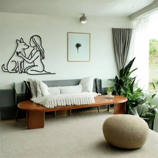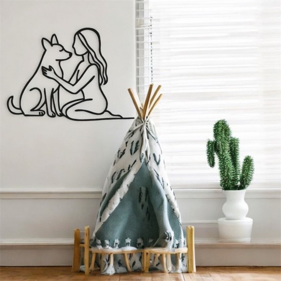 Lazer Kesim Metal Duvar Dekoru, Kız ve Köpek 40 cm