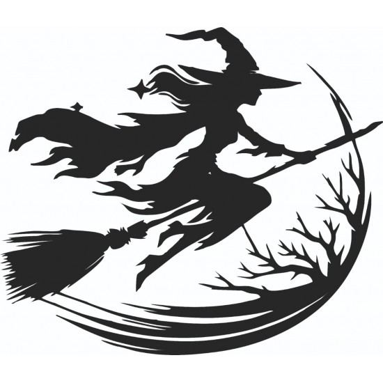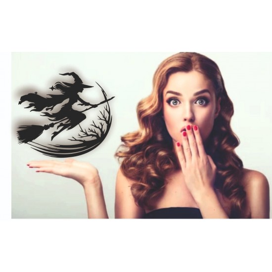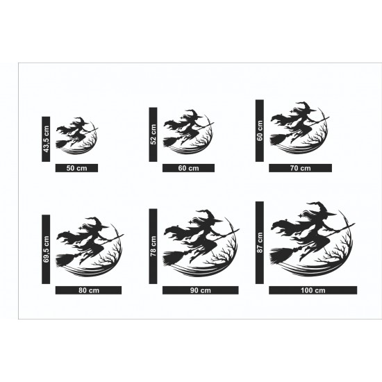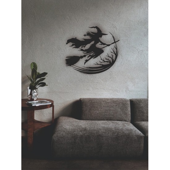 Lazer Kesim Metal Duvar Dekoru, uçan cadı 40 cm
