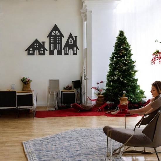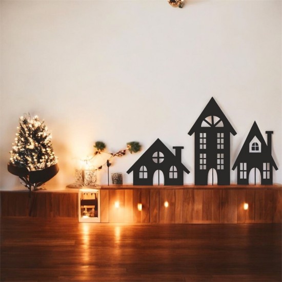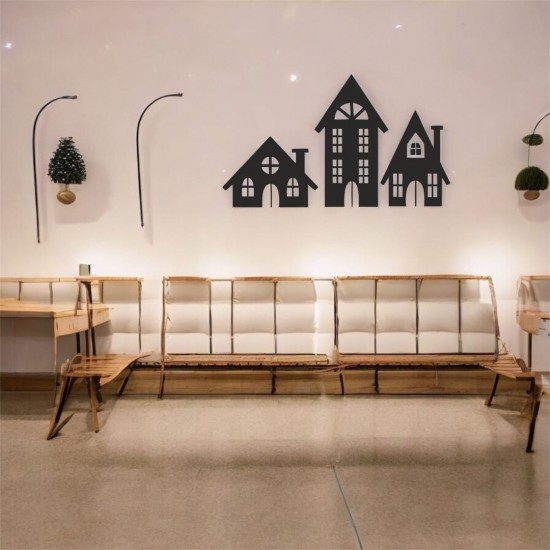 Lazer Kesim Metal Duvar Dekoru, Üçlü Ev 40 cm