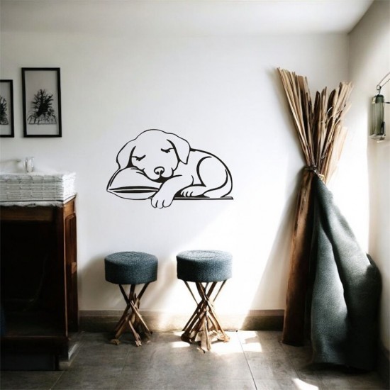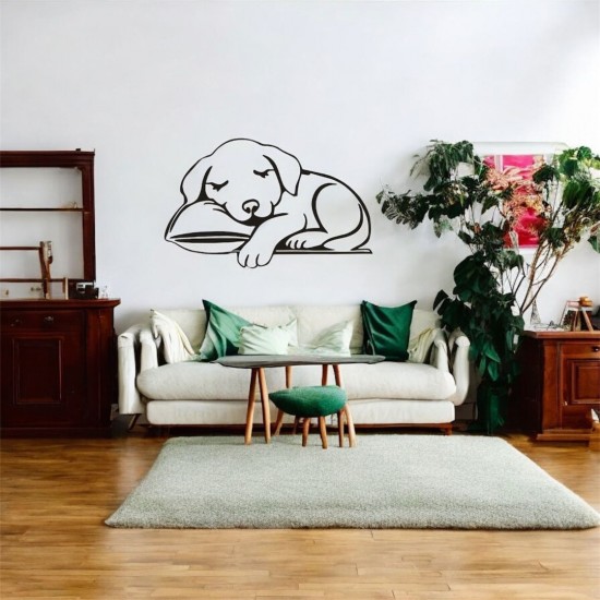 Lazer Kesim Metal Duvar Dekoru, Uyuyan Köpek 40 cm