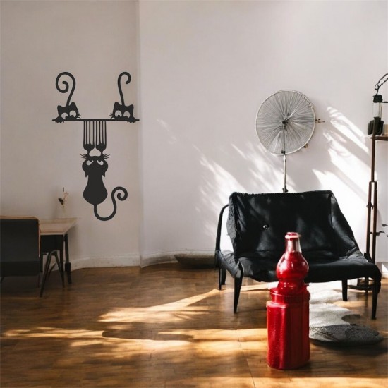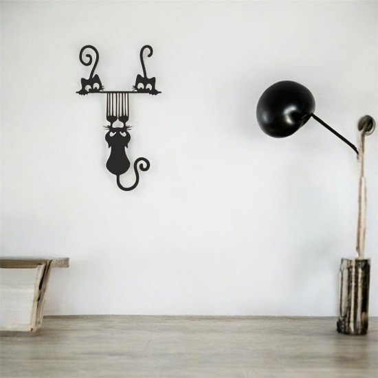 Lazer Kesim Metal Duvar Dekoru, Yaramaz Kedicikler 40 cm