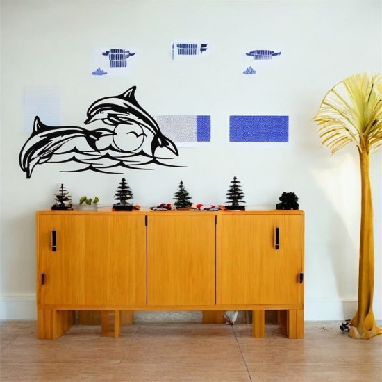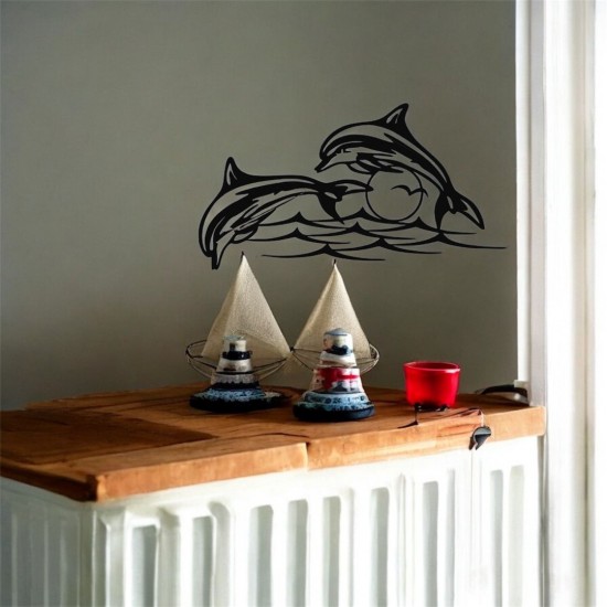 Lazer Kesim Metal Duvar Dekoru, Yunuslar 40 cm