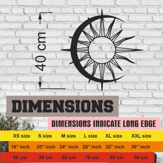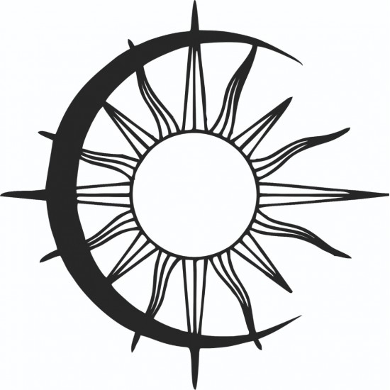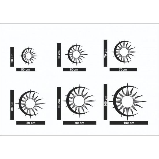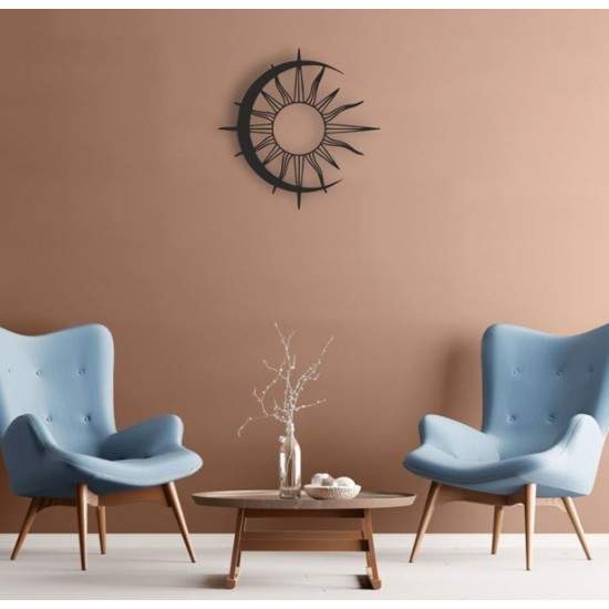 Lazer Kesim Metal Duvar Dekoru, Güneş Ay Dalgalı 40 cm