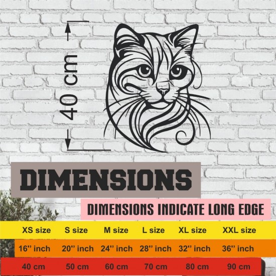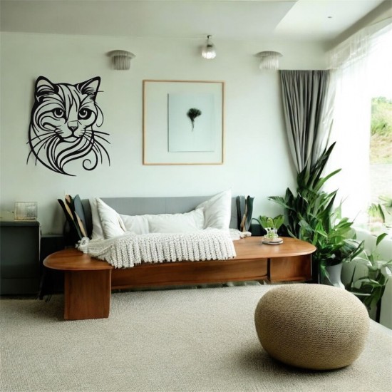 Lazer Kesim Metal Duvar Dekoru, Kedi Silüeti 40 cm