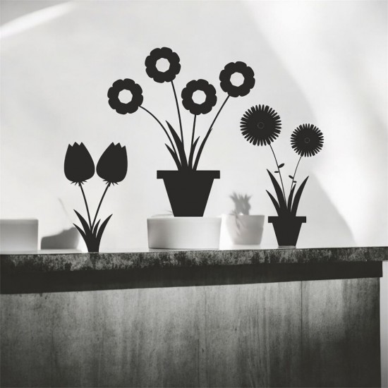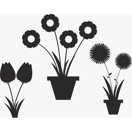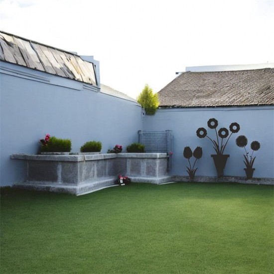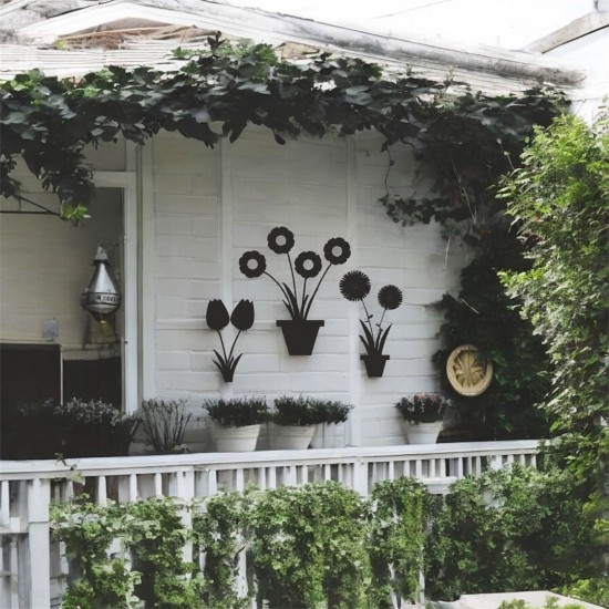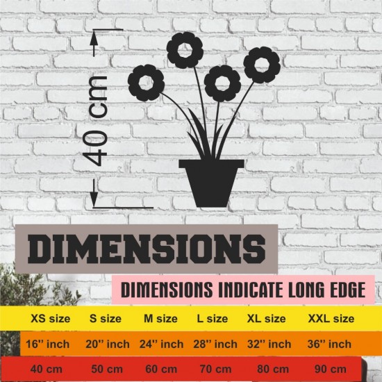 Lazer Kesim Metal Duvar Dekoru,saksılı çiçek figürü 40 cm