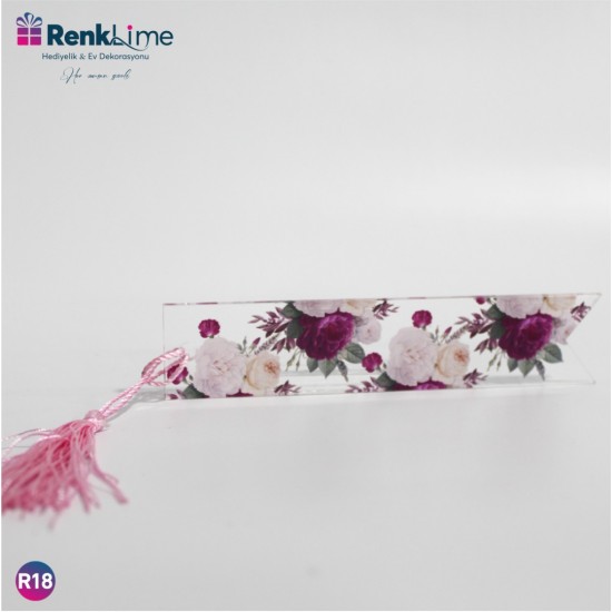 Pleksi Kitap Ayracı Mor Çiçekli