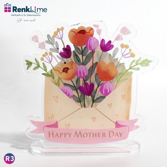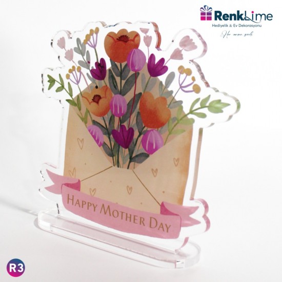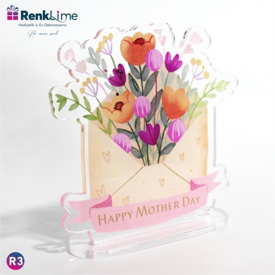 Pleksi Masa Üstü Anneler Günü Hediyesi renkli çiçek buketi