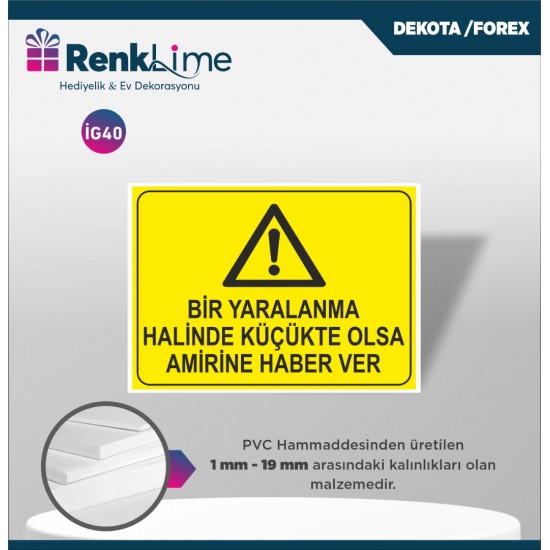 Uyarı İkaz Levhası - Bir Yaralanma Halinde Amirine Haber Ver
