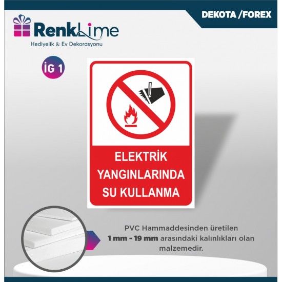 Uyarı İkaz Levhası - Elektrik Yangınlarında Su Kullanma